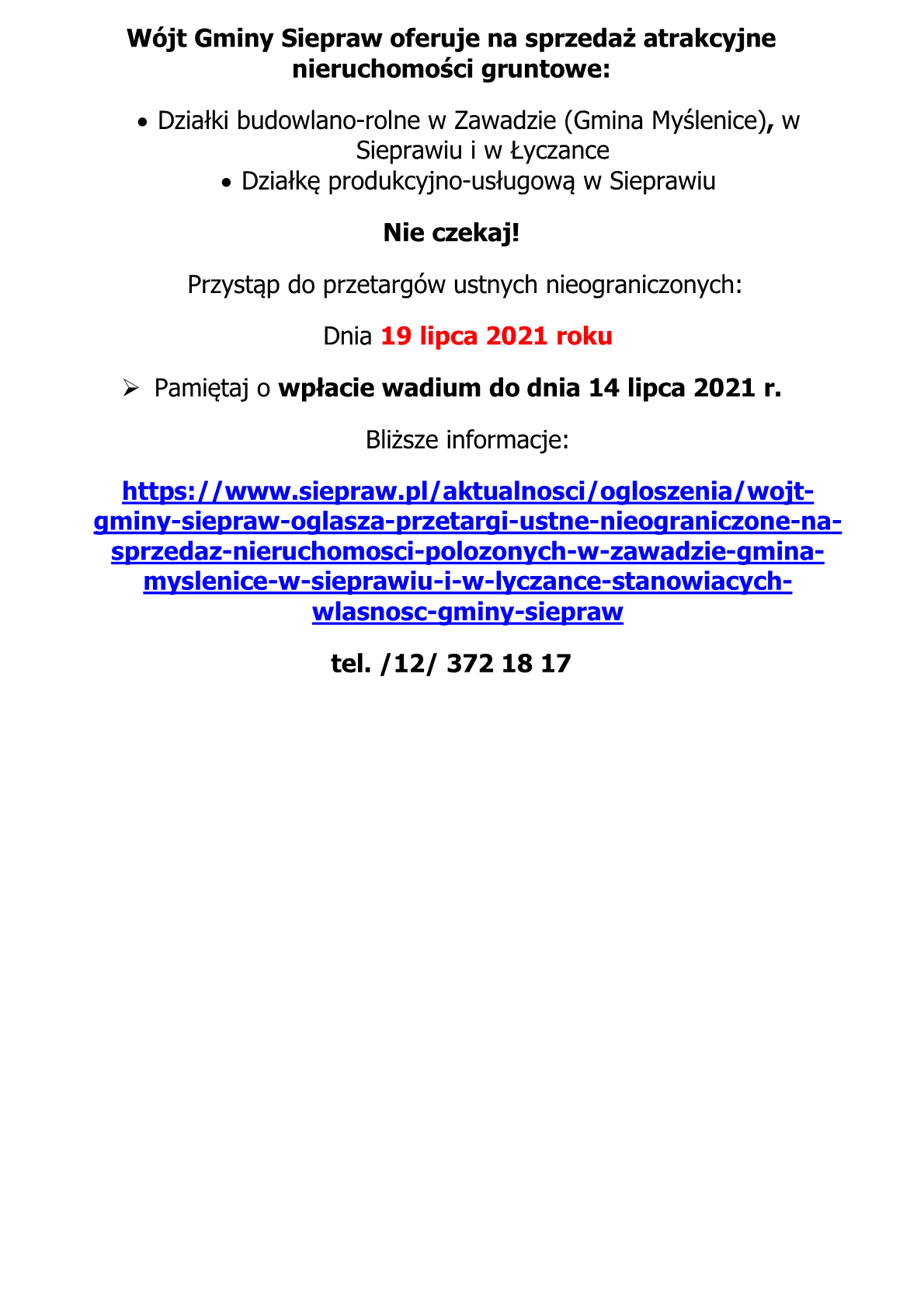 • Sprzedaż atrakcyjnych nieruchomości gruntowych /
