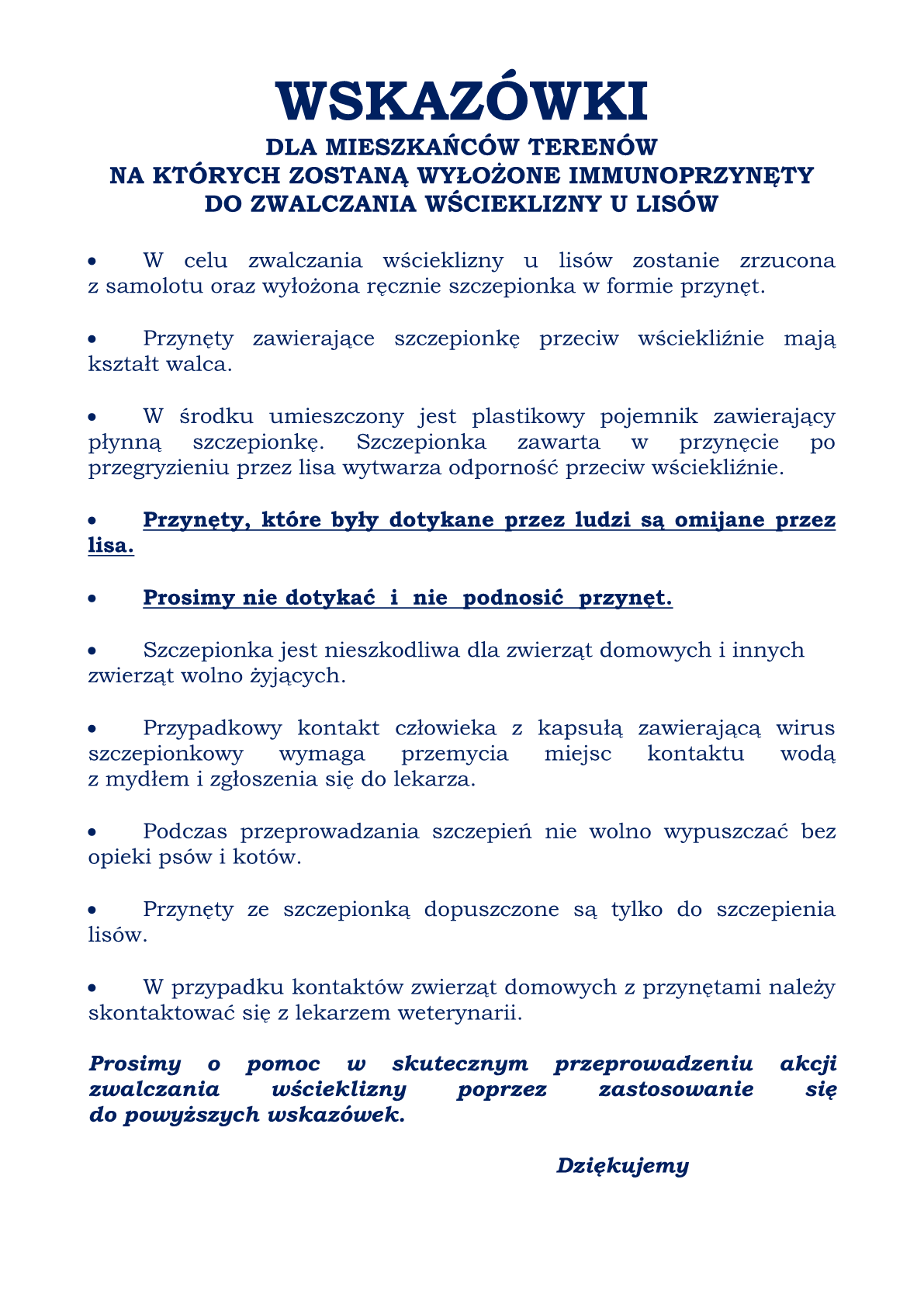 WSZELKICH INFORMACJI DOTYCZĄCYCH AKCJI SZCZEPIENIA LISÓW UDZIELAJĄ: