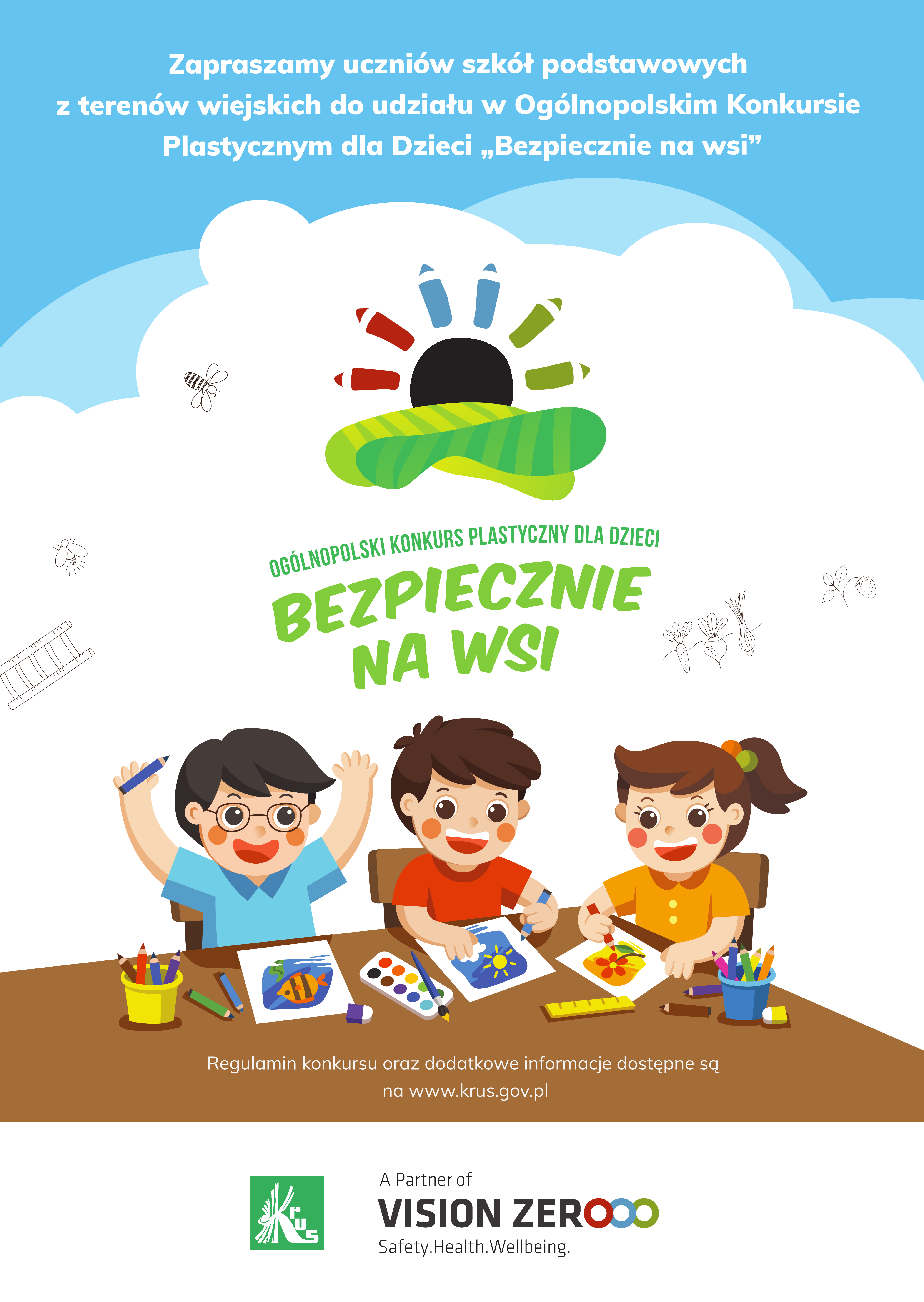 Kasa Rolniczego Ubezpieczenia Społecznego Placówka Terenowa w Myślenicach informuje o rozpoczęciu kolejnej, jedenastej edycji Konkursu Plastycznego dla Dzieci, pod hasłem ,,Bezpiecznie na wsi mamy – od 30 lat z KRUS wypadkom zapobiegamy”. Patronat honorowy nad Konkursem sprawuje Minister Rolnictwa i Rozwoju Wsi.