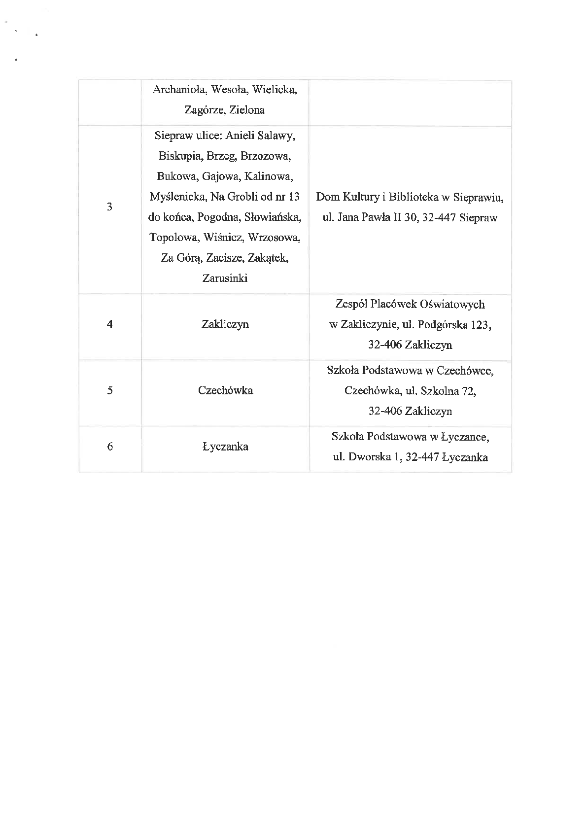 Na podstawie art. 12 § 2 i 11 ustawy z dnia 5 stycznia 2011 r. - Kodeks wyborczy (Dz. U. z 2022 r. poz. 1277 i 2418 oraz z 2023 r. poz. 497) w związku z art 16 § 3 ustawy z dnia 26 stycznia 2023 r. o zmianie ustawy - Kodeks wyborczy oraz niektórych innych ustaw (Dz. U. poz. 497) został dokonany podział Gminy Siepraw na stałe obwody głosowania w wyniku czego została utworzona nowa siedziba Obwodowej Komisji Wyborczej w Łyczance z siedzibą w w Szkole Podstawowej w Łyczance, ul. Dworska 1.