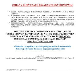 Odnośnie szczegółowych zasad postępowania w kwarantannie domowej odsyłamy do naszej poprzedniej ulotki, link: https://pl-pl.facebook.com/myslenicki/photos/pcb.1847413558727415/184741...