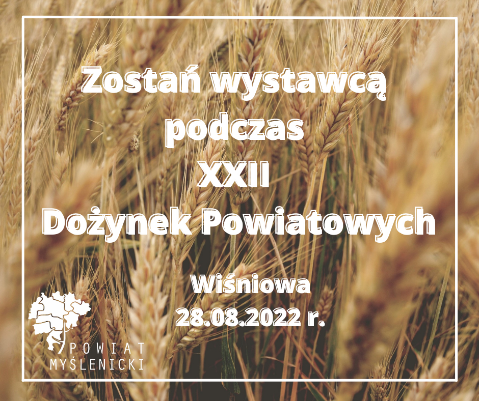 Powiat Myślenicki prowadzi nabór wystawców na Dożynki Powiatu Myślenickiego, które odbędą się 28 sierpnia w Wiśniowej.