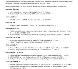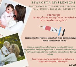 - Profilaktyka sepsy szczepienia przeciwko meningokokom typu C - program skierowany do dzieci w wieku od 1- 18 r.ż. zameldowanych na terenie gmin powiatu myślenickiego. W załączeniu lista przychodni POZ biorących udział w programie szczepień na terenie Powiatu Myślenickiego