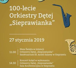 Serdecznie zapraszamy na koncert kolęd w wykonaniu Orkiestry Dętej "Sieprawianka", który odbędzie się w dniu 27 stycznia 2019 roku o godzinie 14.30 na sali konferencyjnej w Sieprawiu. O godzinie 11.00 w Sanktuarium bł. Anieli Salawy w Sieprawiu msza święta w intencji Orkiestry Dętej.