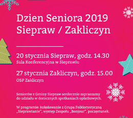 Seniorów z Gminy Siepraw serdecznie zapraszamy do udziału w dorocznych spotkaniach opłatkowych. W tym roku Dni Seniora odbędą się: