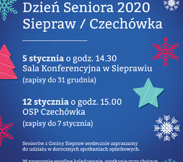 Seniorów z Gminy Siepraw serdecznie zapraszamy do udziału w dorocznych spotkaniach opłatkowych, które odbędą się w następujących terminach:
