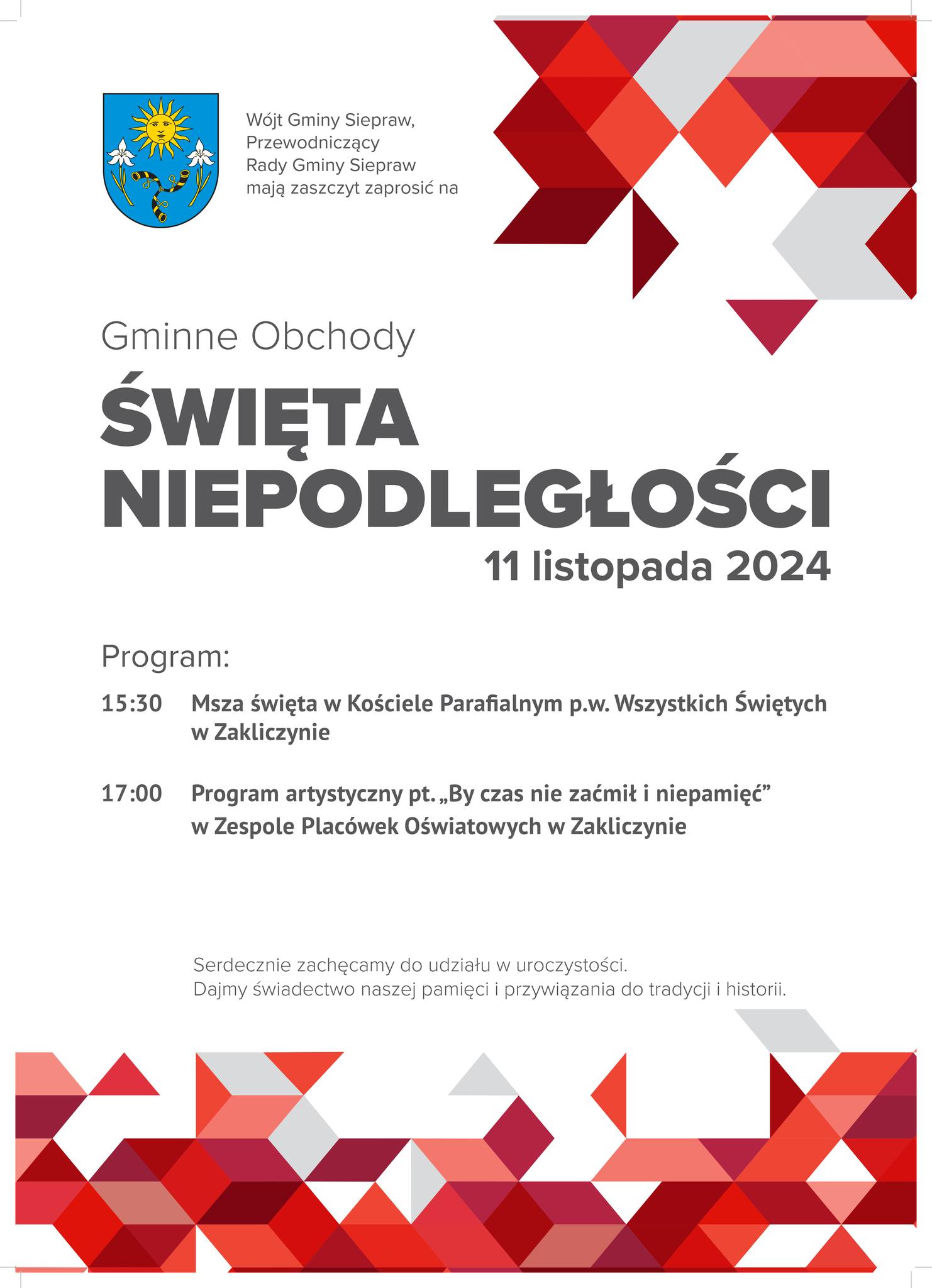 Z ogromną radością zapraszamy Was na tegoroczne Gminne Obchody Święta Niepodległości, które odbędą się 11 listopada 2024 roku.