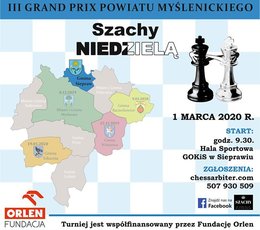 Zapraszamy na kolejny turniej szachowy w ramach III Grand Prix Powiatu Myślenickiego "Szachy NIEDZIELĄ"
