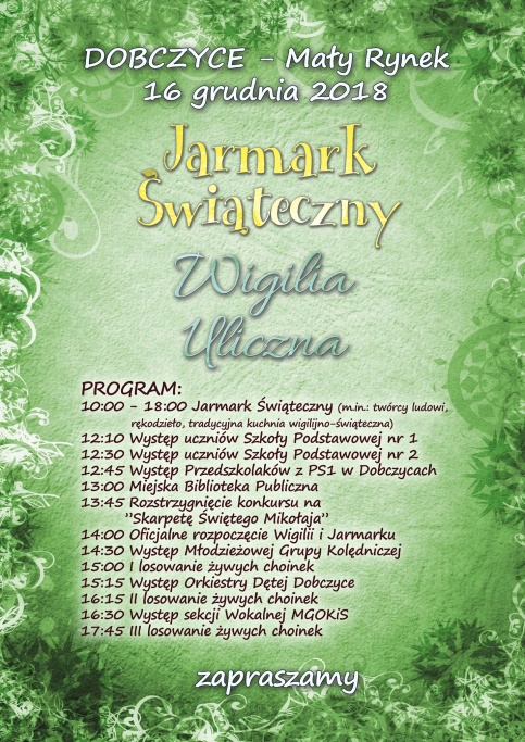 Serdecznie zapraszamy mieszkańców na Jarmark Świąteczny, w którym będzie brało udział Stowarzyszenie z Zakliczyna "Na Dzisiaj i Na Jutro".