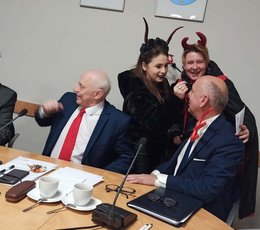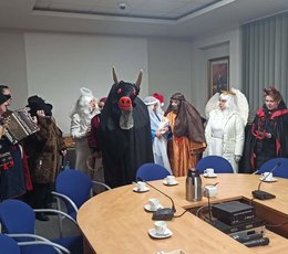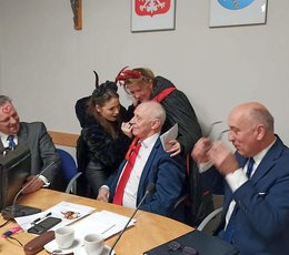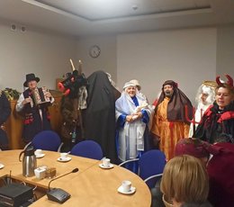 Radnych podczas XLI Sesji Rady Gminy Siepraw 28 grudnia br. odwiedziła Grupa Kolędnicza ze Świętą Rodziną, Dziadem, Turoniem, Żydem, Aniołami, Diabłami i Muzykantami. Podczas tej radosnej wizyty rajcy gminni oraz goście sesji mogli usłyszeć lokalne aranżacje kolęd, a Diabły i Turoń w tym czasie sprawiali tradycyjnie psikusy. Cieszymy się, że tradycja kolędowania w Gminie Siepraw nie zamiera i są animatorzy oraz lokalni artyści, którzy podtrzymują starodawne zwyczaje.