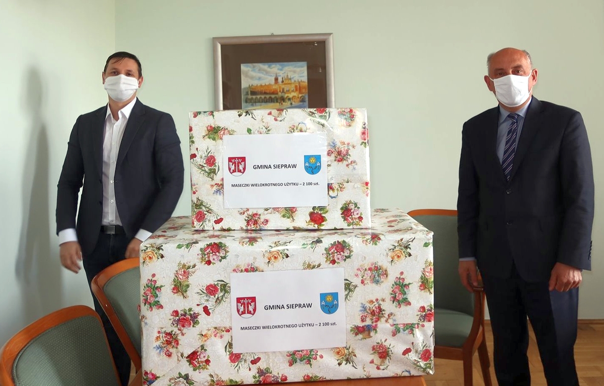 W dniu dzisiejszym Wicestarosta Rafał Kudas przekazał Gminie Siepraw 2100 szt. maseczek ochronnych wielokrotnego użytku na ręce Wójta Gminy Siepraw Tadeusza Pitali. Zakup maseczek sfinansował Powiat Myślenicki ze swojego budżetu.