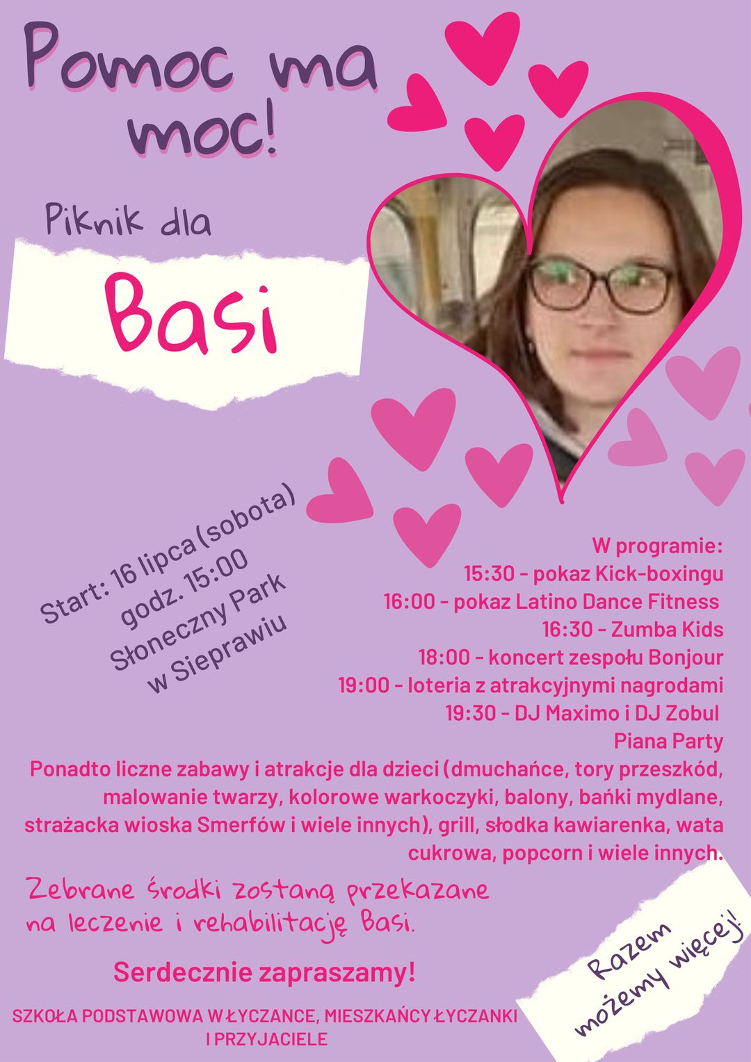 W sobotę 16 lipca na terenie słonecznego parku odbędzie się Piknik dla Basi ,,POMOC MA MOC’’