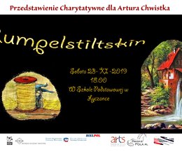 Grupa Teatralna „PŁOMIENIE KULTURY” i Dyrektor Szkoły Podstawowej w Łyczance serdecznie zapraszają na przedstawienie charytatywne pt. „RUMPELSTILTSKIN”, które odbędzie się 23 listopada 2019 roku (sobota) o godzinie 18.00 w sali gimnastycznej Szkoły Podstawowej w Łyczance. Dochód z przedstawienia przeznaczony będzie na rehabilitację Artura Chwistka.