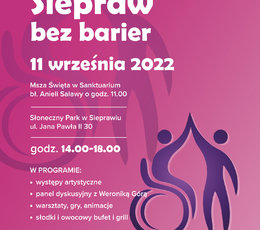 Zapraszamy Państwa na piknik integracyjny "Siepraw bez barier". Piknik odbędzie się 11 września w godz. 14:00-18:00 na terenie Słonecznego Parku w Sieprawiu.