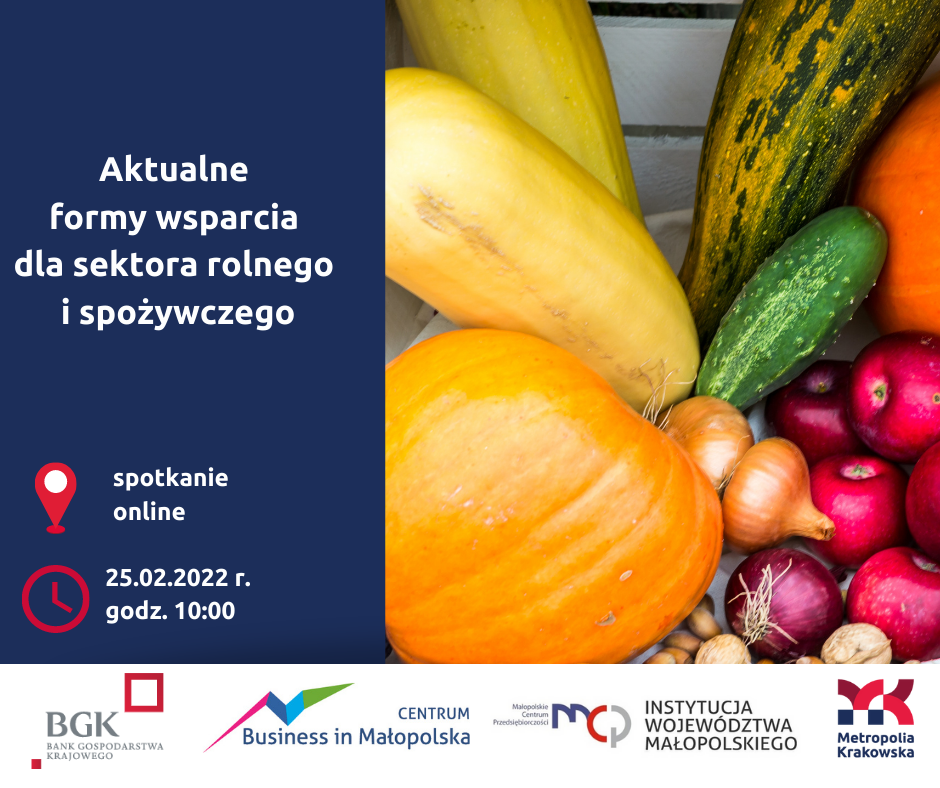 Celem spotkania jest przedstawienie aktualnych form wsparcia firm działających w branży spożywczej i rolnej.