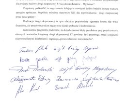 Jednocześnie, podczas spotkania w Sieprawiu, obecni samorządowcy podziękowali mieszkańcom swoich gmin za wsparcie sprzeciwu wobec wszystkich propozycji korytarzy drogi ekspresowej S7 i podpisali wspólne Stanowisko.