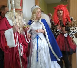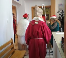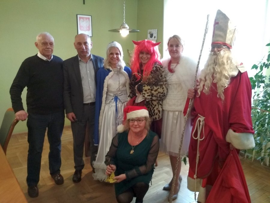 Tak bardzo dziś przez wszystkich wyczekiwany, wreszcie przybył! Św. Mikołaj! Na tymczasową siedzibę w Sieprawiu obrał sobie Przedszkole "Kropla Słońca". Pojawił się także w Urzędzie Gminy wraz ze swoją barwną świtą, obdarowując bądź słodyczami, bądź... rózgami. Jak kto zasłużył ;)