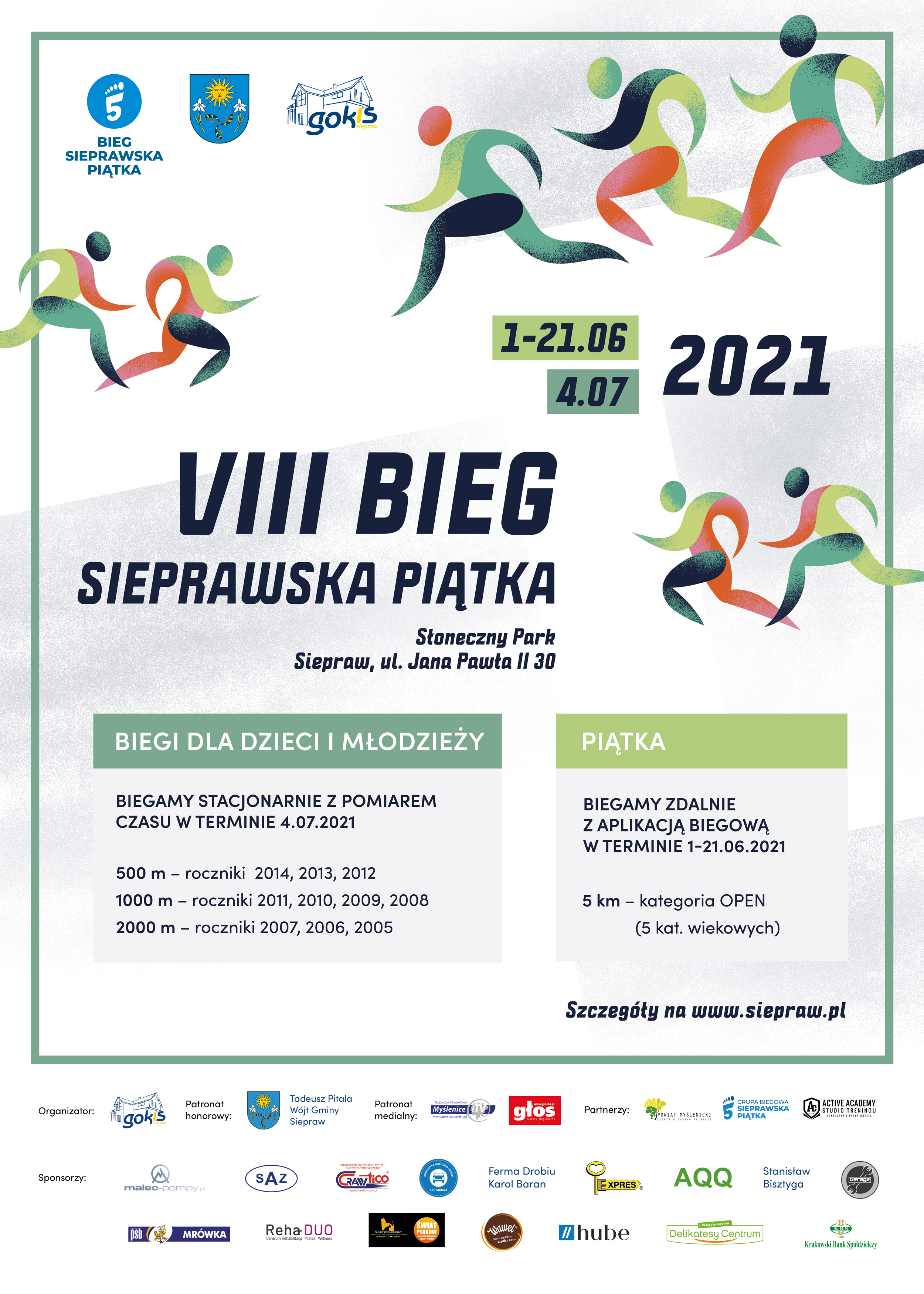 W załączniku znajdziecie Regulamin wydarzenia. Prosimy o zapoznanie się z nim, udział w VIII Sieprawskiej Piątce jest bowiem jednoznaczny z jego akceptacją.