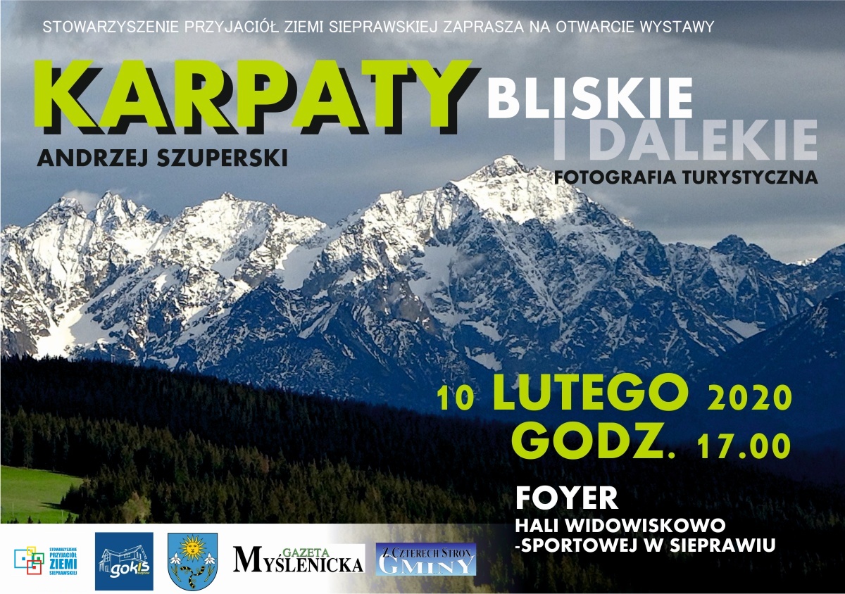 Stowarzyszenie Przyjaciół Ziemi Sieprawskiej zaprasza na otwarcie wystawy Andrzeja Szuperskiego pt. “Karpaty bliskie i dalekie – fotografia turystyczna”, które odbędzie się w dniu 10 lutego 2020 r. o godzinie 17.00 w foyer Hali Widowiskowo – Sportowej w Sieprawiu.