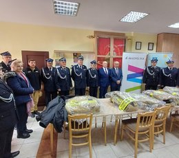 Następnie wszyscy udali się do strażnicy OSP Siepraw, gdzie był zrealizowany projekt z zakresu zakupu odzieży specjalistycznej dla jednostek OSP w ramach działania małopolskie OSP 2023. W ramach projektu zakupiono siedem kompletów ubrań ochronnych (kurtka ciężka, kurtka lekka oraz spodnie) za kwotę 30 100,00 zł, z czego dofinansowanie z programu wyniosło 15 000,00 zł. Dodatkowo ze środków własnych OSP Siepraw zakupiło dodatkowe 3 takie same zestawy ubrań.
