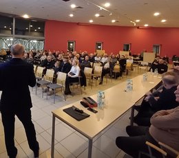Sekretarz Michał Baran przedstawił informacje na temat organizacji komunikacji w gminie, budowy S7, zanieczyszczenia wód przez oczyszczalnię ścieków w Świątnikach Górnych, oraz zagadnienia ochrony powietrza oraz możliwości dofinansowania wymiany pozaklasowych kotłów.