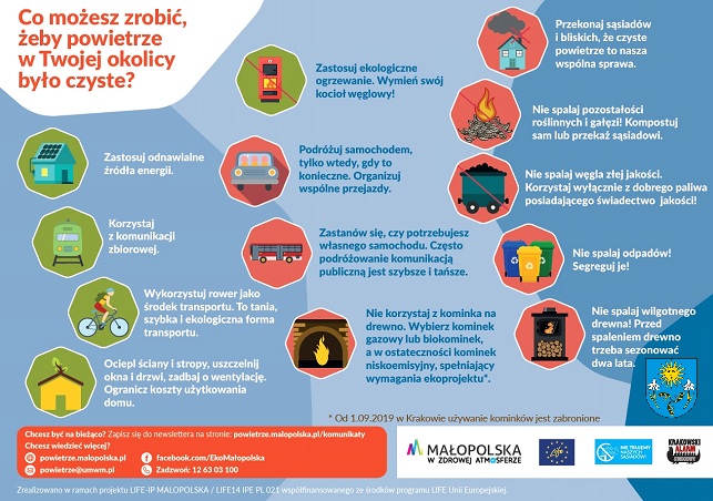 W ramach projektu zrealizowana zostanie adaptacja pomieszczenia na punkt obsługi mieszkańców i pokrycie kosztów wyposażenia. Zatrudniony został Ekodoradca, prowadzone będą lokalne akcje informacyjno-edukacyjne w zakresie ochrony klimatu, poprawy jakości powietrza i wdrażania uchwał antysmogowych dedykowanych dla każdej grupy społecznej. Zostanie przeprowadzona analiza zużycia energii w budynkach użyteczności publicznej oraz zakup kamery termowizyjnej.