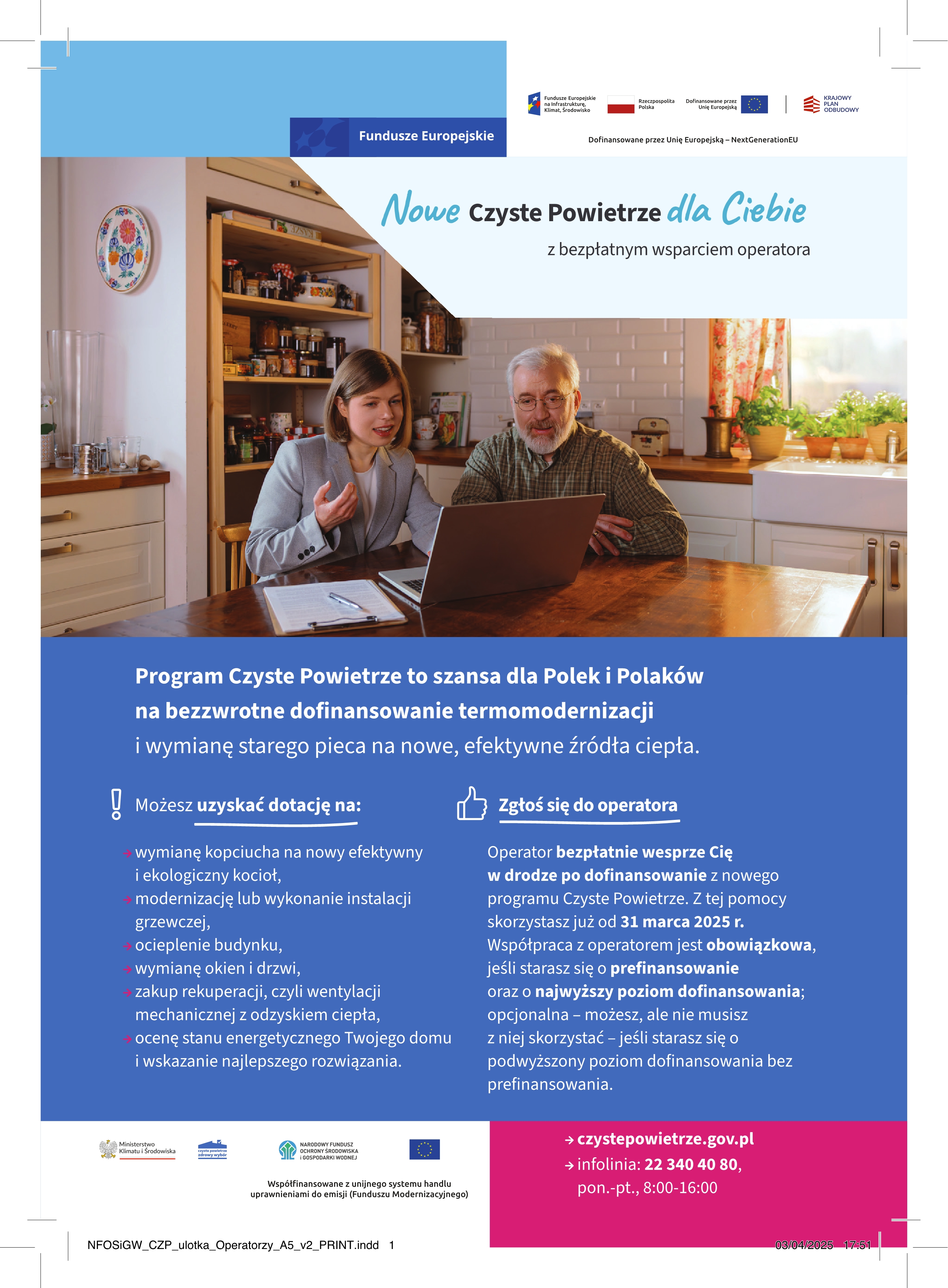 W dniu 31.03.2025 r. rozpoczął się nabór wniosków o dofinansowanie, który będzie prowadzony w ramach programu priorytetowego „Czyste Powietrze” zgodnie z: