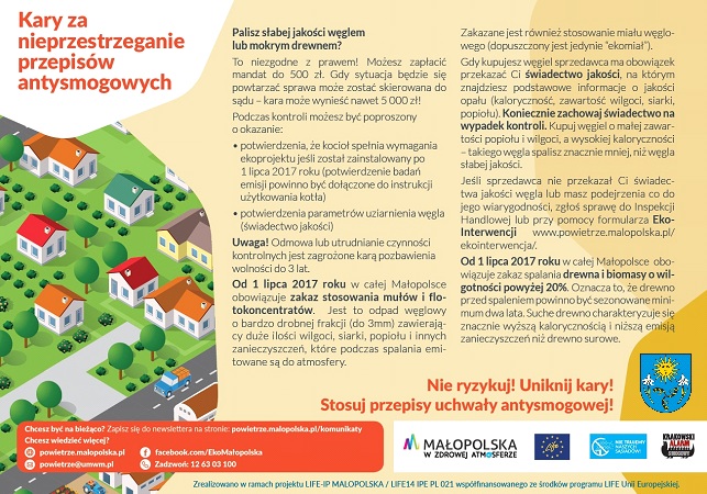 Nieprzestrzeganie zapisów uchwały antysmogowej jest wykroczeniem, za które grozi kara grzywny (art. 334 w zw. z art. 96 POŚ). Jest ona nakładana w drodze mandatu karnego i nie może przekroczyć 500 zł; gdy na podstawie wyroku sądu – 5000 zł.