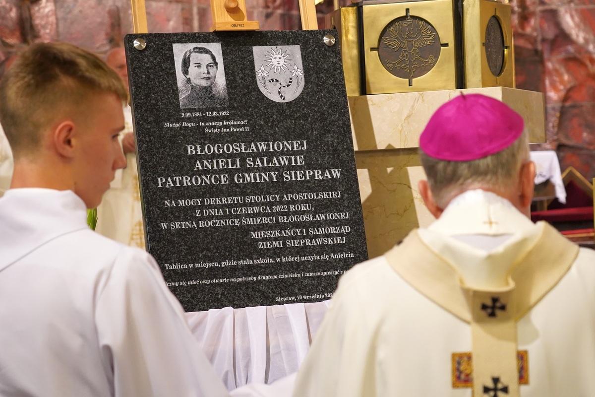 W imieniu samorządu Gminy, w imieniu Mieszkańców serdecznie proszę o poświecenie tablicy upamiętniającej patronat Bł. Anieli Salawy dla Gminy Siepraw, którą zamontujemy w miejscu gdzie w czasach dzieciństwa Anielci stała szkoła powszechna, do której uczęszczała. Niech to będzie także wyraz wdzięczności naszego pokolenia dla naszej Błogosławionej Rodaczki, bo to Ona dzisiaj rozsławia naszą małą Gminę nie tylko w Małopolsce, lecz w całym kraju i w świecie.
