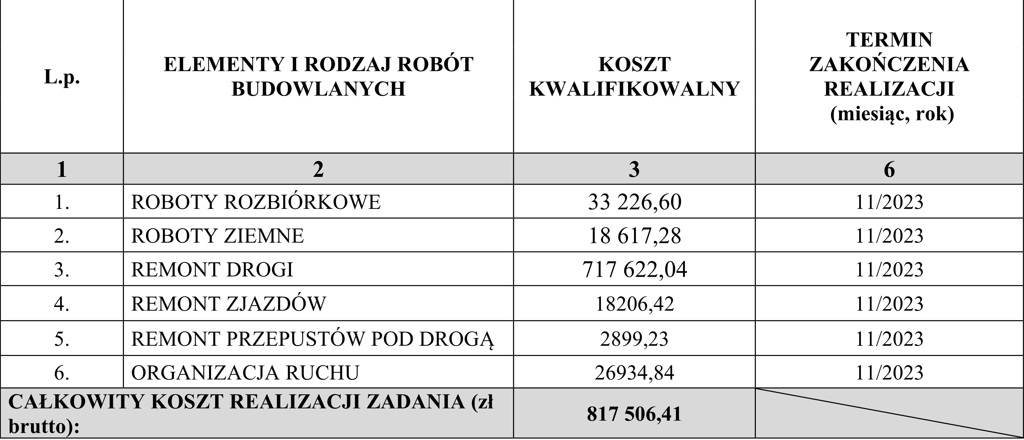 BUDŻET PROJEKTU: Całkowita wartość inwestycji 817 506,41, w tym dofinansowanie ze środków Rządowego Funduszu Rozwoju Dróg 408 753,00 zł.