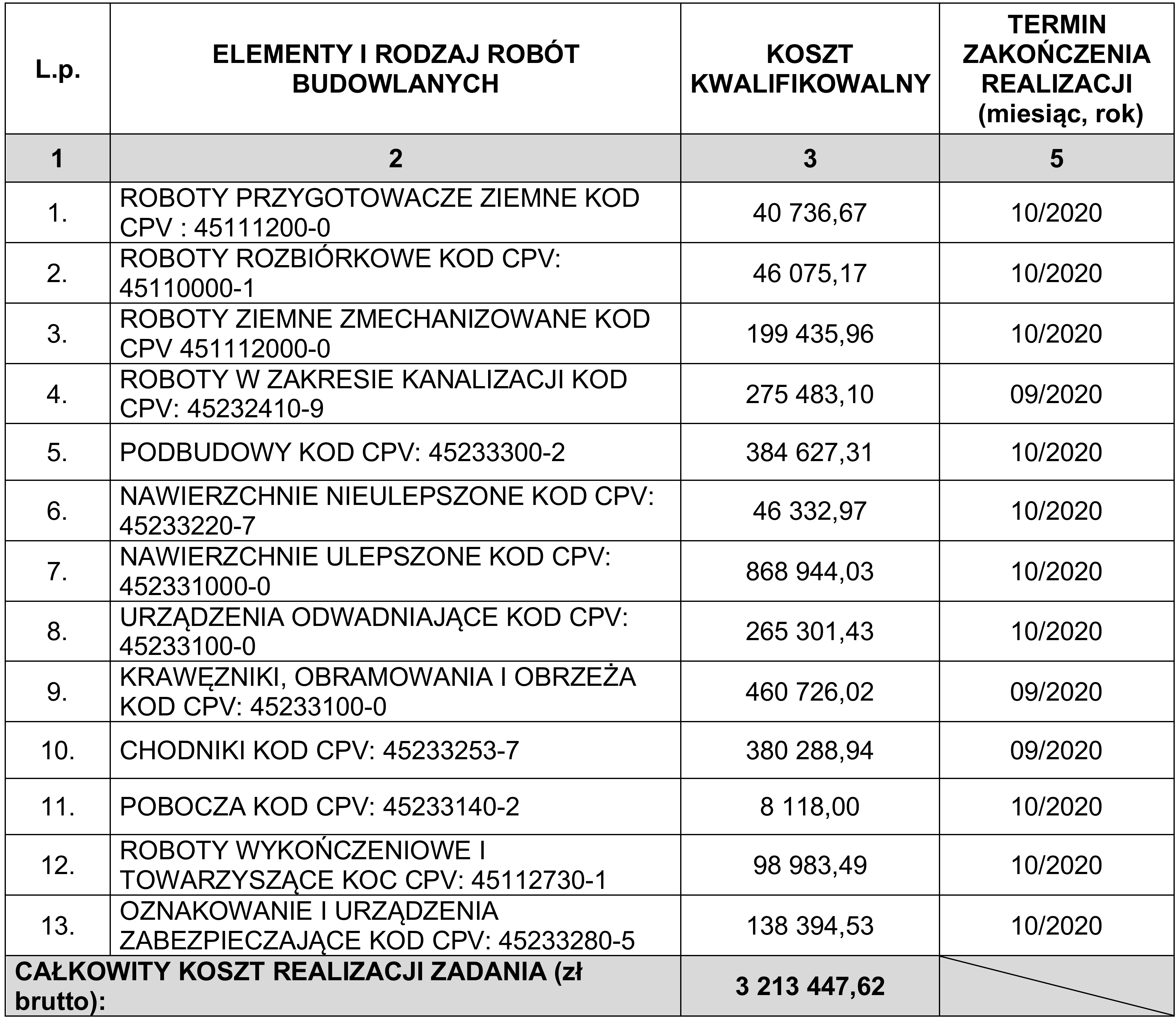 Całkowita wartość inwestycji – 3 213 447,62 zł, w tym: